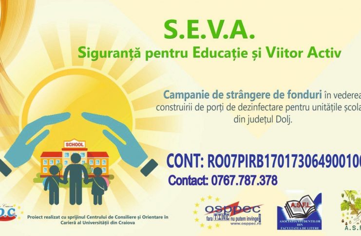 „Împreună pentru educație”. Studenții Organizației Studenților Politehniști Profil Electric Craiova (OSPPEC), Asociației Studenților din Facultatea de Litere (ASFL) și Asociației Studenților din Facultatea de Horticultură (ASFH), cu sprijinul Centrului de consiliere şi orientare în carieră (CCOC) al Universităţii din Craiova, lansează iniţiativa civică „SEVA – Siguranță pentru educație și viitor activ”, ce constă într-o campanie de strângere de fonduri pentru construirea unor porți de dezinfectare pentru unitățile școlare din județul Dolj. Toate fondurile strânse în urma acestei inițiative vor fi direcționate, exclusiv, pentru achiziționarea materiei prime necesare construirii porților, urmând…