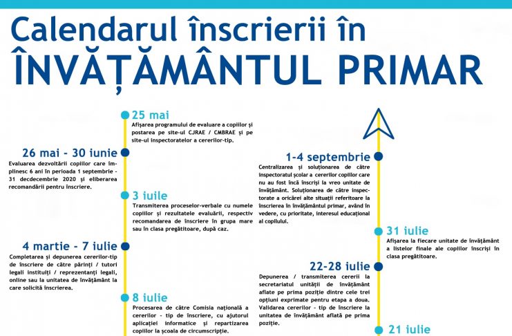 Ordinul ministrului educației și cercetării, Monica Anisie, privind modificarea și completarea Calendarului și a metodologiei de înscriere a copiilor în învățământul primar pentru anul școlar 2020 -2021 a fost publicat în Monitorul Oficial. Principalele modificări/completări vizează aspecte procedurale și de calendar, după cum urmează: 1. Copiii care împlinesc vârsta de 6 ani până la data de 31 august 2020, inclusiv, pot fi înscriși în clasa pregătitoare, în conformitate cu prevederile Legii educației naționale nr. 1/2011, cu modificările și completările ulterioare, până în data de 7 iulie. În acest caz, părintele/tutorele legal…