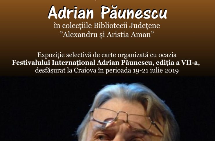Biblioteca Județeană „Alexandru și Aristia Aman” organizează vineri, 19 iulie 2019, Expoziția selectivă de carte „Adrian Păunescu în colecțiile Bibliotecii Județene Alexandru și Aristia Aman”. Expoziția poate fi vizitată în Salonul Expozițional al Bibliotecii Județene „Alexandru și Aristia Aman” până miercuri 31 iulie a.c. inclusiv. Acțiunea se integrează în seria activităților organizate cu ocazia desfășurării celei de-a VII-a ediții a Festivalului Internațional „Adrian Păunescu”, în intervalul 19-21 iulie 2019, și are rolul de a evoca opera și activitatea lirică a lui Adrian Păunescu. În semn de omagiu, una dintre sălile…