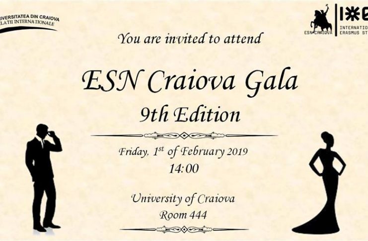Asociația Erasmus Student Network (ESN) Craiova, cu sprijinul Biroului Erasmus+, Departamentul de Relații Internaționale din cadrul Universității din Craiova, va organiza vineri, 1 februarie 2019, cea de-a IX-a ediție a Galei ESN Craiova, ce va avea loc la Universitateadin Craiova, înAmfiteatrulDrăgan, sala 444, începândcuora 14.00. Gala ESN Craiova este un evenimentce marchează sfârșitul fiecărui semestru de studii și reprezintă prilejul de a premia studenţii străini care efectuează o mobilitate în cadrul programului Erasmus+, dar nu numai, pentru participarea la proiectele desfăşurate la Universitateadin Craiova, precum şi pentru implicarea în evenimentele…