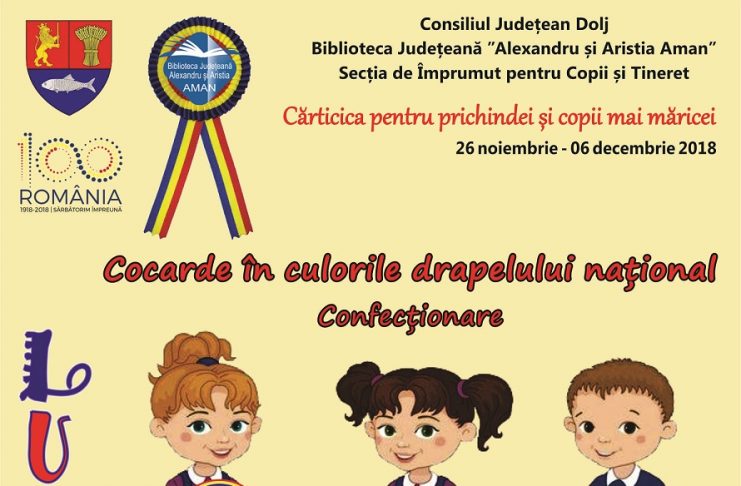 Biblioteca Județeană „Alexandru și Aristia Aman” organizează, în intervalul 26 noiembrie – 6 decembrie 2018, în cadrul proiectului „Cărticica pentru prichindei și copii mai măricei”, acțiunea cu titlul „Cocarde în culorile drapelului național – confecționare”. Activitățile de proiect dedicate marcării Centenarului Marii Uniri de la 1918 sunt programate să se desfășoare în intervalul octombrie – decembrie 2018. În cadrul activității și-au anunțat participarea următoarele grădinițe și școli: Luni, 26 noiembrie 10-11 Grădinița „Petrache Poenaru”; 11-12 Grădinița „Ray Kids”; 12-13 Grădinița „Ray Kids”; Marți, 27 noiembrie 10-11Grădinița „Ion Creangă”; 11-12 Grădinița…