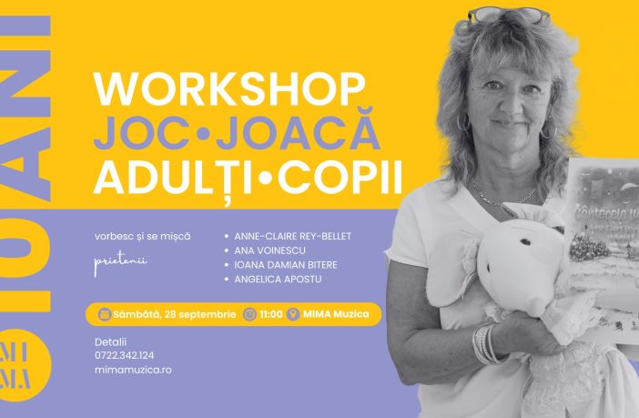 Centrul MIMA Muzica aniversează 10 ani de activitate și sărbătorește printr-un eveniment special deschis publicului. Sâmbătă, 28 septembrie, orele 11:00, de Ziua internațională pentru accesul universal la informație, la Centrul MIMA Muzica din București are loc workshop-ul gratuit Joc. Joacă pentru adulți și copii care doresc să experimenteze noi metode de învățare, sub îndrumarea mentorilor acreditați și invitatei speciale, Anne-Claire Rey-Bellet, autoare, compozitoare, profesoară de ritmică la Institutul Jaques-Dalcroze din Geneva și co-fondatoare a Asociației Dalcroze România. Inteligența și dezvoltarea armonioasă a copilului prin muzică și mișcare Noua generație de…