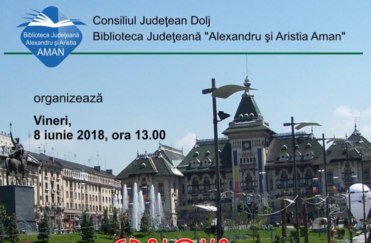 Biblioteca Județeană „Alexandru și Aristia Aman” organizează vineri, 8 iunie, începând cu ora 13:00, în sala „Adrian Păunescu”, proiectul cu titlul „Craiova, inima Olteniei”. Activitatea se înscrie în seria de acțiuni pe care le organizează Biblioteca Județeană „Alexandru și Aristia Aman” cu ocazia desfășurării Zilelor Municipiului Craiova, ediția a XXII-a, și are ca scop prezentarea rolului istoric jucat de Craiova în cuprinsul regiunii istorice Oltenia din cele mai vechi timpuri și până în prezent. Discuțiile se vor centra în mod special asupra personalităților și evenimentelor reprezentative pentru Craiova și Oltenia.…
