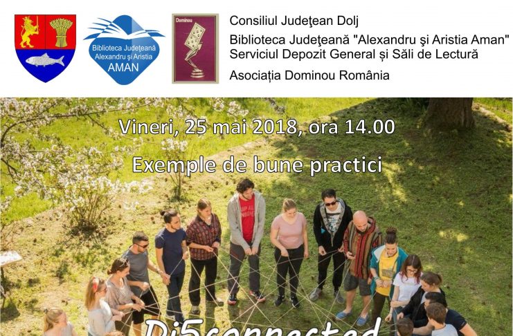 Biblioteca Județeană „Alexandru și Aristia Aman” găzduiește vineri, 25 mai 2018, ora 14.00, în sala „Academician Dinu C. Giurescu”, o întâlnire a tinerilor care au participat la proiectul „Di5Connected”, proiect cofinanțat prin programul Erasmus Plus. Proiectul Di5connected a implicat 24 de tineri din Austria, Croatia, Italia si Romania in activitati care au urmărit să-i învețe mai multe despre relația fiecăruia cu tehnologia, să experimenteze viața într-un mediu multicultural, fără a folosi vreun dispozitiv tehnologic. Din România au luat parte la acest proiect 6 tineri, cu vârste cuprinse între18 și 25…