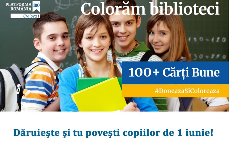 Comunitatea Locală „România 100 Craiova I” desfășoară până la 29 mai 2018 o campanie de strângere de cărți pentru copii și adolescenți în cadrul proiectului „100+ cărți bune”, care vor fi donate Bibliotecii Comunale din Argetoaia cu ocazia Zilei Copilului, de 1 iunie. „Îi încurajăm pe craioveni să dăruiască noi povești de 1 iunie copiilor și împreună să îmbogățim rafturile bibliotecii din comuna Argetoaia. Prin implicarea noastră, accesul la educație al copiilor din mediul rural se îmbunătățește”, transmite av. Lucian Bernd Săuleanu, moderatorul Comunității Locale RO100 Craiova I. Vă așteptăm…