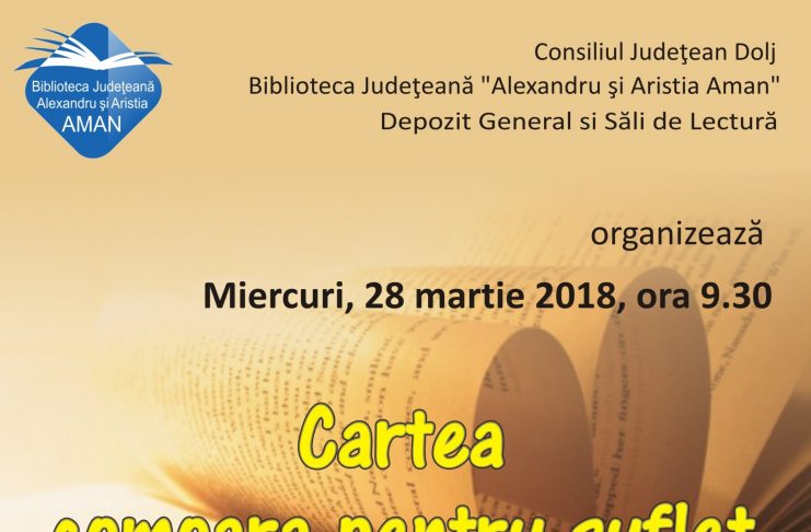 Biblioteca Județeană ”Alexandru și Aristia Aman” în colaborare cu Liceul Tehnologic Special “Bethoveen’’ desfășoară miercuri, 28 martie 2018, începând cu ora 9.30, în sala “Acad. Dinu C. Giurescu”, prima acțiune educativă din seria activităților lunare care urmează să se desfășoare în cadrul proiectului educativ ”Cartea – comoară pentru suflet”. La activitate vor participa elevi de la Liceul Special Tehnologic “Bethoveen”, însoțiți de profesorii Octavia Ștefan, Ionela Martie, Ileana Negoiță și Carla Tudor. Proiectul educativ ”Cartea – comoară pentru suflet” are scopul de a promova aspectele legate de rolul și importanța…