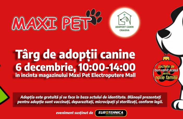 Salubritate Craiova, prin Serviciul de Gestionare a câinilor fără stăpân, organizează un nou târg de adopții canine, alături de sponsorul Maxi Pet România! De data aceasta, evenimentul va avea loc în incinta magazinului Maxi Pet Electroputere Mall (Calea București nr. 78C – 78D, aripa de Vest, Clădirea C2, Unitatea G10a), pe data de 6 decembrie 2025, între orele 10:00 și 14:00. Șapte câini din adăpostul public (deparazitați, microcipați, sterilizați și vaccinați) vor fi prezentați publicului și vom încerca să le găsim o casă nouă, cu ajutorul voluntarilor noștri, dar și cu…