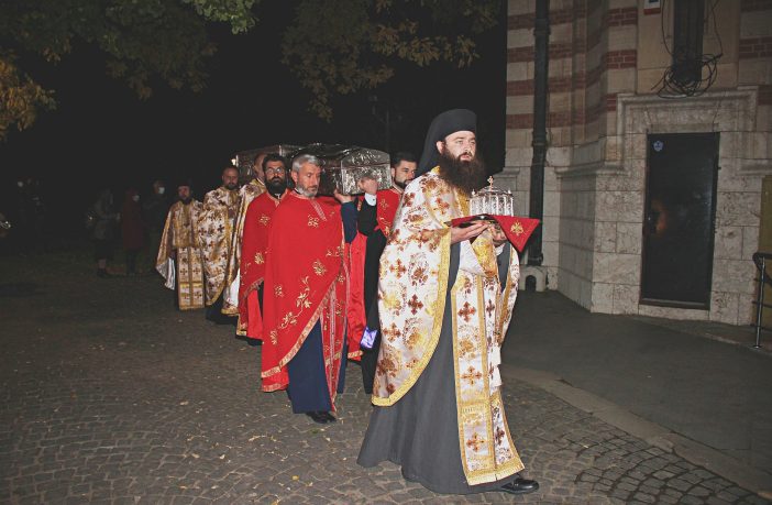 Catedrala Mitropolitană „Sfântul Dumitru” din Craiova și-a sărbătorit săptămâna aceasta Ocrotitorul spiritual, pe Sfântul Mare Mucenic Dimitrie, Izvorâtorul de Mir. Momentele liturgice speciale au început prin săvârșirea Vecerniei unită cu Litia, urmată de procesiunea împrejurul Catedralei cu racla în care se află moaștele Sfinților Nifon, Serghie, Vah și Tatiana. De asemenea, cu prilejul hramului, în procesiune a fost purtată și o mica raclă cu o părticică din moaștele Sfântului Mare Mucenic Dimitrie, primită de Catedrala Mitropolitană, sfânt odor care va rămâne spre cinstire și închinare în acest sfânt locaș. Marţi,…