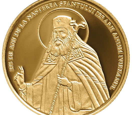 Începând cu data de 3 martie 2025, Banca Națională a României lansează în circuitul numismatic o monedă din aur cu tema 375 de ani de la nașterea Sfântului Ierarh Antim Ivireanul. Caracteristicile monedei din aur cu tema 375 de ani de la nașterea Sfântului Ierarh Antim Ivireanul sunt următoarele: Metal aur Valoare nominală 100 lei Titlu 900‰ Formă rotundă Diametru 21 mm Greutate 6,452 g Cant zimțat Calitate proof Aversul monedei prezintă un detaliu al ușii de la intrarea în biserica mănăstirii Antim, inscripția „ROMANIA” în arc de cerc, stema României, anul de emisiune „2025”…