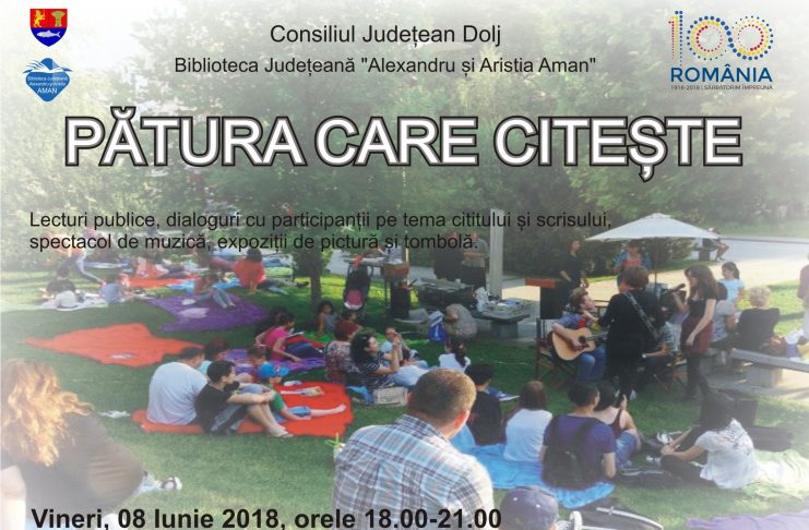 Biblioteca Judeţeană „Alexandru și Aristia Aman” organizează, vineri, 8 iunie 2018, începând cu ora 18:00, în Craiova, în părculețul de lângă Piața „Mihai Viteazul”, „Pătura care citeşte”. Proiectul a fost lansat la Timișoara în 2013, de Biblioteca Județeană „Sorin Titel”, instituție care deține și marca înregistrată, iar din 2015 s-a desfășurat și la Craiova. Proiectul se desfășoară în cadrul Zilelor Municipiului Craiova, ediția a XXII-a, și încheie seria de acțiuni organizate de Biblioteca Județeană „Alexandru și Aristia Aman” în perioada1-8 iunie. La fel ca în cazul edițiilor anterioare, craiovenii sunt…