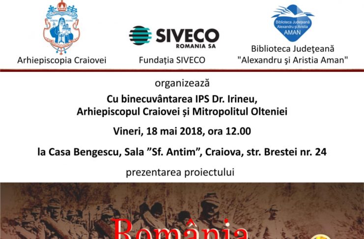 Biblioteca Județeană „Alexandru și Aristia Aman”, împreună cu Fundația SIVECO și Arhiepiscopia Craiovei, organizează pe data de 18 mai 2018, prezentarea Enciclopediei Digitale „România 1918. Oameni, momente și imagini”. Proiectul, realizat în parteneriat cu personalități ale societății românești și instituții prestigioase de cultură, beneficiază de binecuvântarea IPS Dr. Irineu, Arhiepiscopul Craiovei și Mitropolitul Olteniei. Enciclopedia digitală „România 1910. Oameni, momente și imagini” este un proiect dedicat Centenarului Marii Uniri, un proiect inedit oferit școlilor și societății românești, românilor de pretutindeni. Lucrareacomemorează momente istorice de o importanță deosebită, de la izbucnirea…