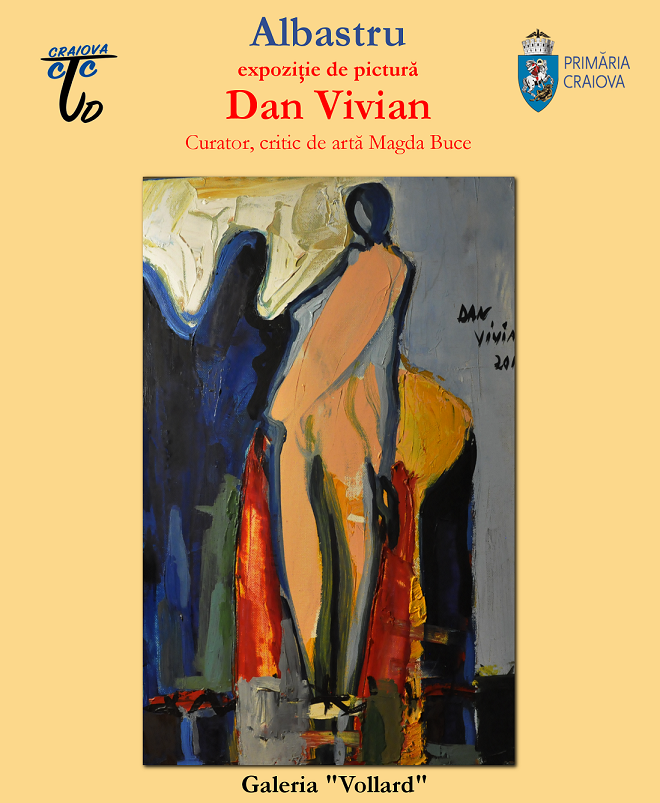 Casa de Cultură „Traian Demetrescu” organizează vineri, 04 mai 2018, ora 18.00, la Galeria „Vollard”, vernisajul expoziţiei de pictură „Albastru”, a artistului Dan Vivian. Curator al expoziţiei este Magda Buce, critic de artă. Dan Vivian este absolvent al Facultăţii de Istorie, Filosofie, Geografie din Craiova, specializarea Ştiinţe Politice (promotia 2003) şi absolvent al Liceului de Artă „Marin Sorescu” din Craiova (promoţia 1995 – Secţia pictura monumentală). Picturile sale sunt lucrări de o mare expresivitate artistică, încadrându-se într-un curent modernist, în care compoziţia este o parte importantă a demersului artistic. Culorile…