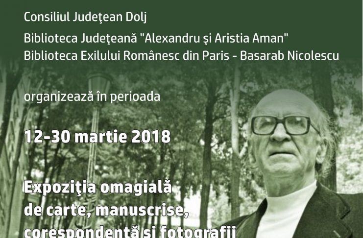 Biblioteca Județeană “Alexandru și Aristia Aman” organizează, în intervalul 12-30 martie 2018, expoziția cu titlul “Mircea Eliade. Expoziţie omagială de carte, manuscrise, corespondenţă şi fotografii”. Expoziția va fi vernisată în cadrul “Bibliotecii Exilului Românesc din Paris – Basarab Nicolescu” și va cuprinde materiale din donaţia Basarab Nicolescu şi arhiva Paul Barbăneagră: cărţi semnate de Mircea Eliade, dar și cărţi despre Mircea Eliade, corespondenţa lui Mircea Eliade cu Vintilă Horia (1949-1966), fotografii inedite cu Mircea Eliade şi alte figuri reprezentative ale lumii literare şi cultural-artistice. De asemenea, vor fi expuse jurnalul…