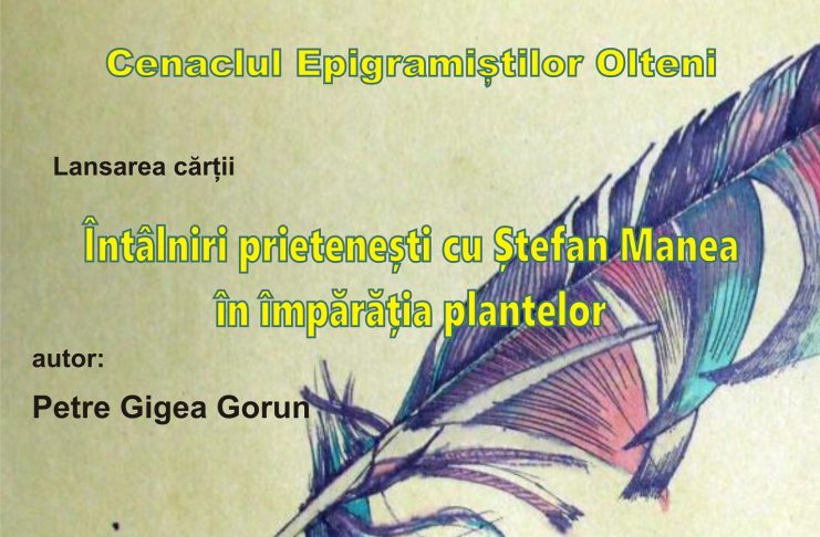 Biblioteca Județeană “Alexandru și Aristia Aman” găzduiește vineri, 9 martie, începând cu ora 15.00, în sala “Acad. Dinu C. Giurescu” întâlnirea lunară a “Cenaclului Epigramiștilor Olteni”. În cadrul acțiunii va fi lansată cartea “Întâlniri prietenești cu Ștefan Manea în împărăția plantelor”, autor Petre Gigea Gorun. În programul evenimentului figurează și acordarea unor distincții de către conducerea cenaclului, respectiv recitaluri de epigrame dn creațiile proprii și din clasicii literaturii națională și universală.