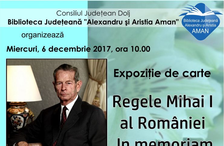 Biblioteca Județeană “Alexandru și Aristia Aman” deschide miercuri, 6 decembrie, expoziția de carte cu titul “In Memoriam Regele Mihai I al României”. Organizată ca urmare a decesului Regelui Mihai I al României în data de 5 decembrie 2017, expoziția reunește cărți și documente despre Regele Mihai I al României dar și despre Casa Regală. Născut la 25 octombrie 1921, rege al României în două rânduri, prima dată în intervalul 1927-1930, cea de-a doua perioadă fiind între anii 1940-1947, Majestatea Sa este ultimul monarh interbelic. Între titlurile expuse menționăm: “Maşinile Regelui”,…