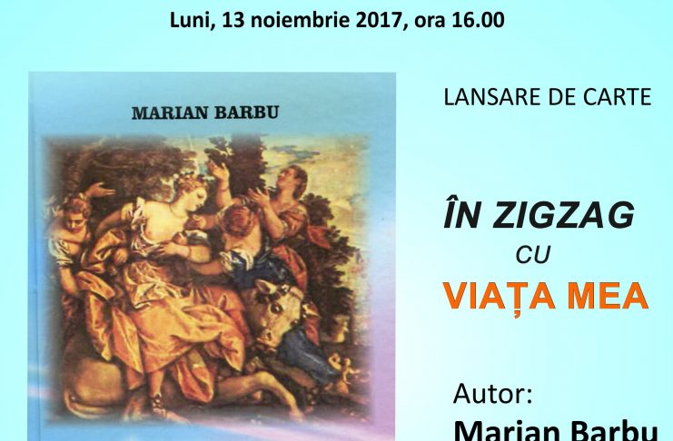 Biblioteca Județeană “Alexandru și Aristia Aman” organizează luni, 13 noiembrie 2017, începând cu ora 16.00, lansarea volumului „În zigzag cu viața mea”, autor Marian Barbu. Invitați: – Tudor Nedelcea, scriitor; – Dan Lupescu, scriitor, jurnalist, director fondator al revistei „Lamura”; – Mihaela Albu, profesor, scriitor. Moderator: Mircea Pospai. Evenimentul se va desfășura în sala “Acad. Dinu C. Giurescu”.