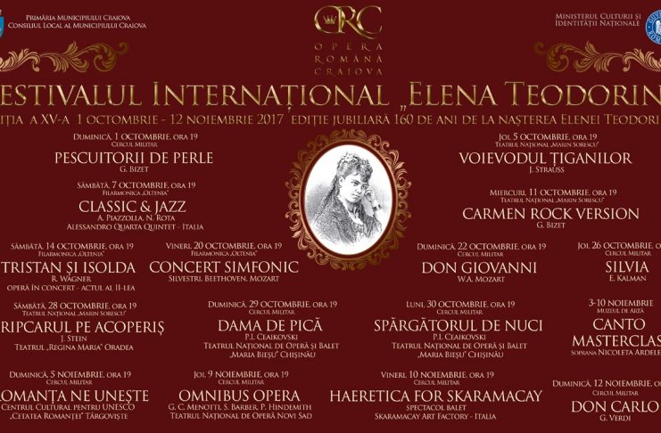 Opera Română Craiova organizează ediția a XV-a a Festivalului Internațional „Elena Teodorini” în perioada 1 octombrie – 12 noiembrie 2017, care cuprinde 16 evenimente importante, care vor prilejui iubitorilor muzicii tot atâtea ocazii de a asculta nume de referință ale artei lirice și titluri de operă în primă audiție pe scenele de spectacol din Craiova. Printre invitați se numără Teatrul Național de Operă și Balet „Maria Bieșu” din Chișinău, care va fi prezent cu spectacolul de operă „Dama de pică” și celebrul balet „Spărgătorul de nuci”. Un alt invitat de…