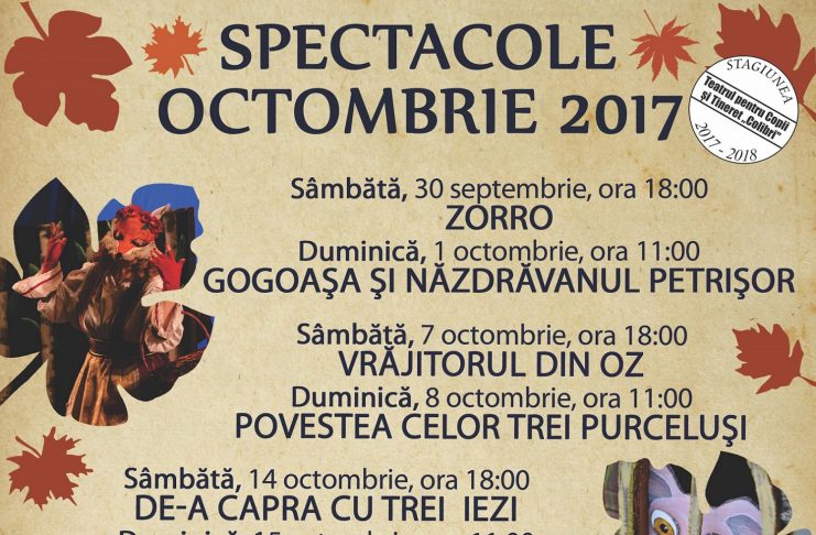Teatrul Colibri Craiova își deschide porțile pentru o nouă stagiune, cu povești frumoase pentru toate vârstele și în forfota atelierelor de creație. Minunata aventură va începe sâmbătă, 30 septembrie 2017, la ora 18:00, cu spectacolul Zorro și va continua cu alte titluri dragi pentru un public de poveste, care se va bucura de proiecte creative și de-a lungul acestei stagiuni. Biletele se pot procura de la Agenţia Teatrului Colibri, de luni până sâmbătă, între orele 10:00 – 13:00 şi 16:00 – 19:00, iar duminica, în intervalul 10:00 – 13:00. Preţul…