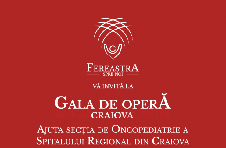 Sâmbătă, 09 septembrie 2017 va avea loc Gala de Operă Craiova – un concert caritabil ce are ca scop strângerea de fonduri pentru copiii cu afecțiuni hematologice și oncologice internați la Clinica de Oncopediatrie a Spitalului Clinic Regional din Craiova. Evenimentul este organizat de Asociația Femei cu Perspectivă din România împreună cu ONG-uri, companii locale și artiști ai Operei Române. Concertul va avea loc la Teatrul de Vară din Parcul Nicolae Romanescu, începând cu ora 18:00. Accesul la eveniment se va realiza pe bază de donație. Donații vor putea realizate…