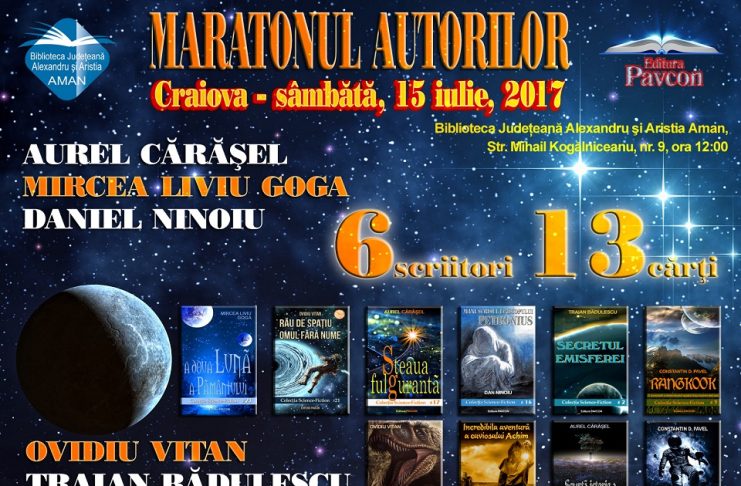 Biblioteca Județeană „Alexandru și Aristia Aman” vă invită sâmbătă, 15 iulie, ora 12:00, la evenimentul de lansare a zece volume de carte, din care trei în premieră absolută, lansate de Editura Pavcon din București. La eveniment participă cei șase autori ai respectivelor volume, unul dintre aceștia fiind chiar directorul Editurii Pavcon, Cătălin Pavel. Este vorba de cărți făcând parte dintr-o serie dedicată literaturii „science fiction” și „fiction”, iar ceilalți cinci autori sunt bucureștenii Ovidiu Vitan și Traian Bădulescu împreună cu craiovenii Aurel Cărășel, Dan Ninoiu și Mircea Liviu Goga. Sunt invitați toți…