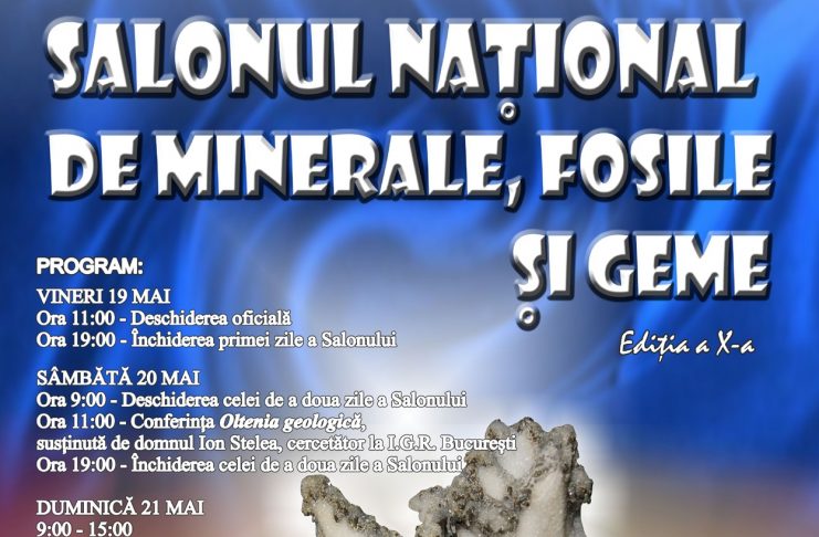 Muzeul Olteniei Craiova, cu sprijinul financiar al Consiliului Judeţean Dolj şi, în parteneriat, cu Primăria Municipiului Craiova şi Consiliul Local, organizează în perioada 19-21 mai a.c., în Piaţa „William Shakespeare”, a X-a ediţie a Salonului Naţional de Minerale, Fosile şi Geme. Deschiderea oficială a manifestării va avea loc vineri, 19 mai, ora 11.00, în Piaţa „William Shakespeare”, în prezența reprezentanților Muzeului Olteniei și autorităților locale. Ca în fiecare an, la Craiova, al treilea week-end din luna mai, transformă Piaţa „William Shakespeare”, într-un regal de culoare și forme, rezultat din etalarea unei diversități/varietăți de minerale,…