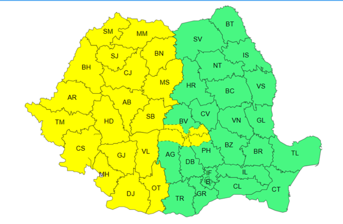 Administrația Națională de Meteorologie a emis o alertă de COD GALBEN de intensificări ale vântului și vijelii pentru jumătatea vestică a țării. Atenționarea este valabilă începând din această seară, de la orele 20,00 și până marți, în jurul orelor 8,00. „În intervalul menționat vântul se va intensifica treptat în Banat, Crișana, Oltenia, jumătatea vestică a Transilvaniei și în Maramureș, cu viteze de 55…65 km/h și pe arii restrânse 70 km/h, iar în a doua parte a nopții va avea aspect de vijelie. În Carpații Occidentali și în Carpații Meridionali, la…