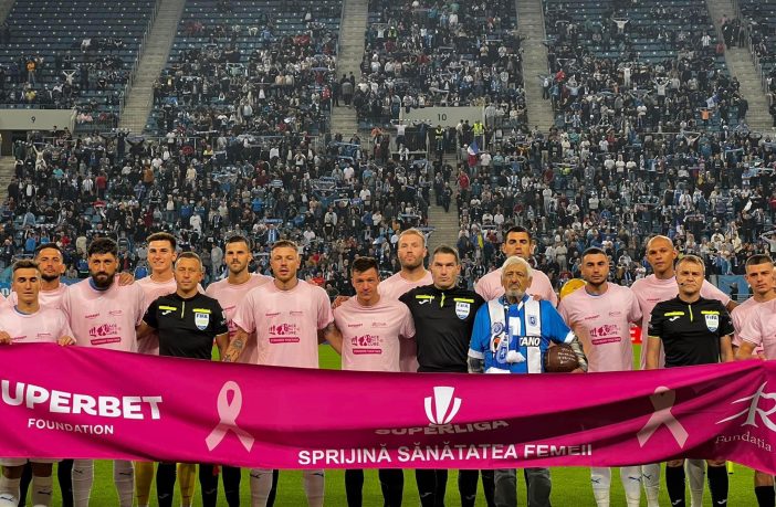 Fotbaliștii celor două echipe, Universitatea Craiova si FC Voluntari, au intrat in această seara în teren în tricouri de culoare roz si cu un banner al Sponsorului Superbet. Bannerul, aceeasi culoare, era unul de susținere a luptei împotriva cancerului.
