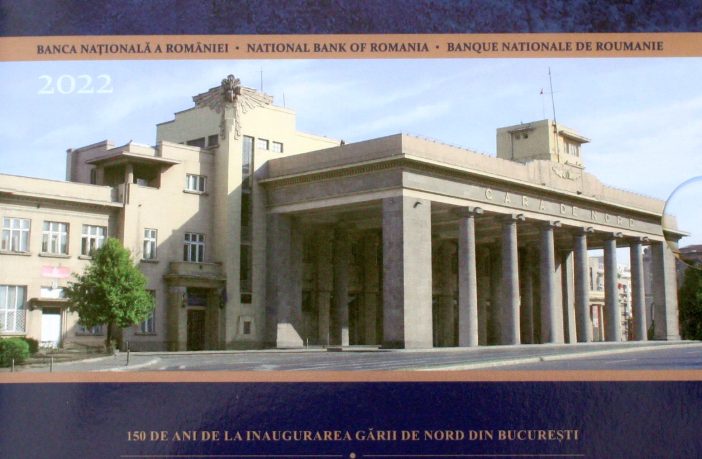 Banca Naţională a României va lansa în circuitul numismatic un set de monetărie cu tema 150 de ani de la inaugurarea Gării de Nord din București. Setul de monetărie va conţine monedele româneşti aflate în circulaţie, cu valoare nominală de: 1 ban, 5 bani, 10 bani, 50 bani, precum şi o medalie din argint. Caracteristicile tehnice ale medaliei din argint sunt următoarele: Metal argint Titlu 800‰ Formă rotundă Diametru 28 mm Greutate 15,5 g Calitate proof like Cant neted Aversul prezintă o imagine actuală a Gării de Nord din…