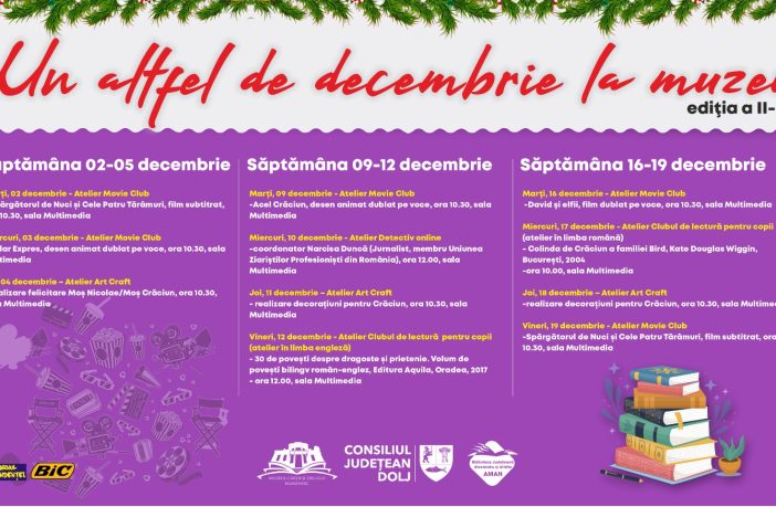 Muzeul Cărții și Exilului Românesc organizează în intervalul 2-19 decembrie 2025, în perioada Târgului de Crăciun, a doua ediție a proiectului Un altfel de decembrie la muzeu, destinat copiilor cu vârsta cuprinsă între 5 și 12 ani. Proiectul Un altfel de decembrie la muzeu cuprinde patru ateliere tematice: Atelier Art Craft, Movie Club, Club de lectură și Detectiv Online și are ca obiectiv principal dezvoltarea creativității și a abilităților sociale prin activități culturale și artistice interactive. Atelierele se vor desfășura conform următorului program: 1.Săptămâna 02-05 decembrie Marți, 02 decembrie – Atelier Movie Club – Spărgătorul…