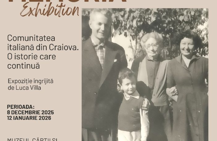 Muzeul Cărții și Exilului găzduiește luni, 8 decembrie 2025, la ora 17.00, vernisajul expoziției documentare „A construi memoria. Comunitatea italiană din Craiova: o istorie care continuă”, organizată sub patronajul Consulatului General al României la Torino, cu sprijinul financiar al Pirelli, Asociația Angora 2023 și altor parteneri. Expoziția „A construi memoria” spune povestea italienilor care au ajuns la Craiova la începutul secolului al XX-lea și au contribuit la dezvoltarea regiunii. Este o invitație de a privi istoria ca pe o împletire de trasee, culturi și destine împărtășite. În decurs de trei decenii,…