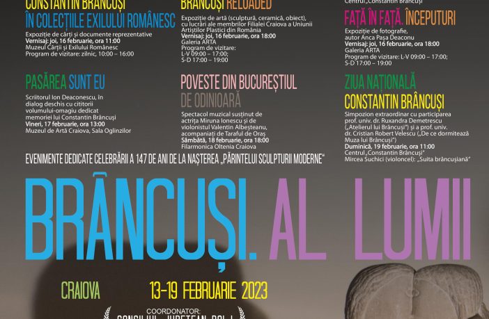 Consiliul Județean (CJ) Dolj marchează, în perioada 13 – 19 februarie, împlinirea a 147 de ani de la nașterea lui Constantin Brâncuși, printr-o suită de evenimente de înaltă ținută, menite să pună în valoare contribuția imensă pe care „Părintele sculpturii moderne“ și-a adus-o la îmbogățirea culturii universale. Seria manifestărilor, așezate sub titlul „Brâncuși. Al lumii”, va fi deschisă de expoziția de artă fotografică, pictură și grafică „Brâncuși văzut prin ochii copiilor”, organizată de Școala Populară de Arte și Meserii „Cornetti“ Craiova și care va fi vernisată luni, 13 februarie. În aceeași…
