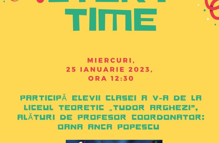 Biblioteca Județeană „Alexandru și Aristia Aman”, prin secția Mediatecă și American Corner Craiova, organizează în data de 25 ianuarie 2023, începând cu ora 12.30, o sesiune de lectură în cadrul proiectului „Story Time”. Întâlnirea va avea loc pe platforma online Zoom. La eveniment participă elevii clasei a V-a de la Liceul teoretic „Tudor Arghezi”, coordonați de profesor Oana Anca Popescu. Se va lectura în limba engleză povestea „I wish I had duck feet”, scrisă de Dr. Seuss.