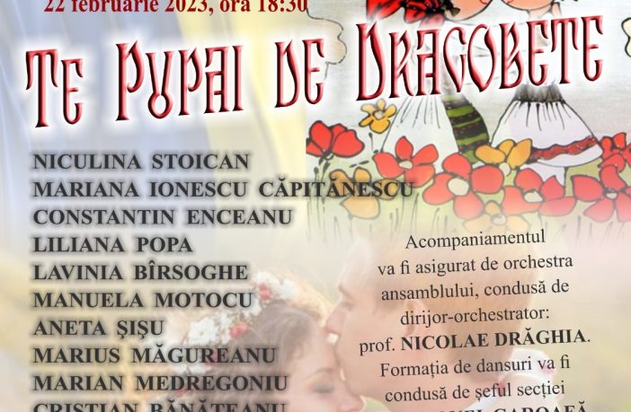 Ansamblul Folcloric „Maria Tănase” sărbătorește ziua iubirii la români cu un spectacol intitulat “Te pupai de Dragobete”. Evenimentul va avea loc miercuri, 22 februarie, de la ora 18:30 la Teatrul Național “Marin Sorescu” din Craiova. “Sărbătorim pe 24 februarie DRAGOSTEA, cel mai puternic sentiment care ne leagă și ne ajută să nu fim niciodată singuri. Ansamblul Folcloric „Maria Tănase” vă invită să ne amintim împreună cât de frumos este să iubești și să cunoști acest sentiment în toate formele lui” a declarat Niculina Stoican, managerul ansamblului. Soliștii: Niculina Stoican, Mariana…