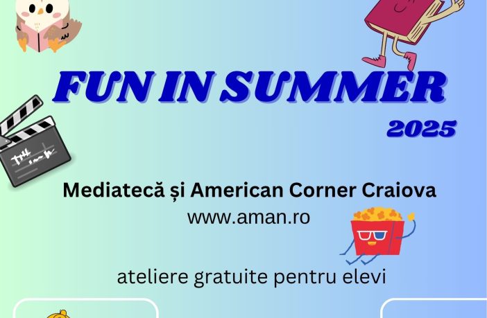 Biblioteca Județeană „Alexandru și Aristia Aman”, prin compartimentul Mediatecă și American Corner Craiova, continuă seria de activități gratuite, desfășurate în fiecare vară în cadrul programului Fun in Summer. Activitățile propuse pentru lunile iulie și august se vor desfășura fizic, la sediul bibliotecii județene (în sala „Marin Sorescu”, secția Mediatecă și American Corner) și se adresează elevilor din clasele V-XI. Înscrierile se realizează în perioada 17-26 iunie 2025, în intervalul orar 08.15-15.30, în limita locurilor disponibile: – personal, la sediul central al Bibliotecii Județene „Alexandru și Aristia Aman”, secția Mediatecă și…