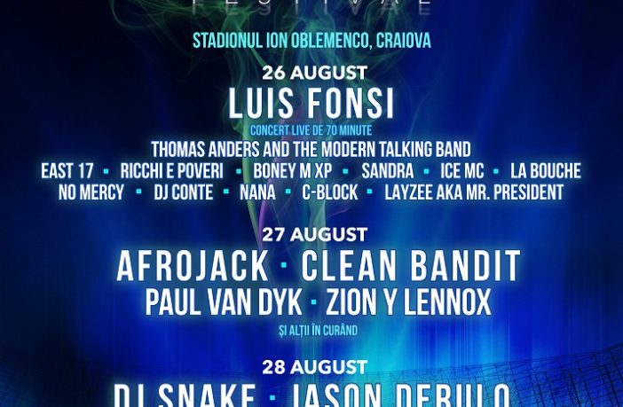 DJ Snake, Jason Derulo, Afrojack, Luis Fonsi, Clean Bandit, Paul van Dyk, sunt headlinerii celui mai mare festival de muzică din sudul României – Între 26 și 28 august, Complexul Sportiv Craiova (Stadionul Ion Oblemenco) va găzdui Festivalul IntenCity, evenimentul care aduce împreună muzica de ieri, de azi și de mâine, la Craiova, într-o sărbătoare a oamenilor care știu să dea ritm verii. Publicul va avea ocazia să participe la concerte live ale unor artiști internaționali renumiți, și să se bucure, împreună cu prietenii și familia, de hituri latino, electro…