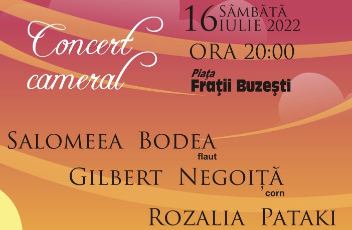 În program: Jacques Ibert: Entr‘acte pentru flaut și harpă Johann Sebastian Bach / Charles Gounod: Ave Maria Camille Saint-Saëns: Lebăda din „Carnavalul animalelor” Gabriel Fauré: Siciliana Jules Massenet: Meditație din opera „Thaïs” Astor Piazzolla: „Oblivion” pentru corn și harpă Edvard Grieg: Cântecul lui Solveig din „Peer Gynt” Maurice Ravel: Pavana pentru o infantă defunctă Gaetano Donizetti: Aria „Una furtiva lagrima” din opera „Elixirul dragostei” Consuelo Velasquez: „Besame mucho” Salomeea Bodea este studentă la Master la Universitatea Națională de Muzică din București, la clasa prestigiosului flautist Ion Bogdan Ștefănescu, membră a…