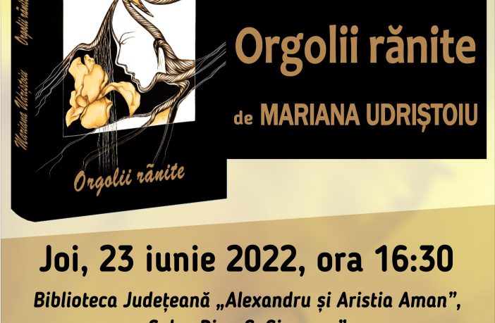 Biblioteca Județeană „Alexandru și Aristia Aman” organizează joi, 23 iunie 2022, la ora 16.30, în curtea bibliotecii, lansarea volumului de proză „Orgolii rănite”, autor Mariana Udriștoiu. La eveniment, care va fi moderat de Nicolae Marinescu, participă invitații: Marius Ghica, Ana Paraschivescu, Nicolița Sandu, Ion Popescu – Brădiceni. Filolog de vocație, Mariana Udriștoiu s-a născut în localitatea prahoveană Rotari-Ceptura, a urmat cursurile gimnaziale și liceale la Buzău, apoi a absolvit Facultatea de Litere din Craiova, specializarea Limbă și literatură română – Limba franceză. Începând din 1982, Mariana Udriștoiu a publicat articole…