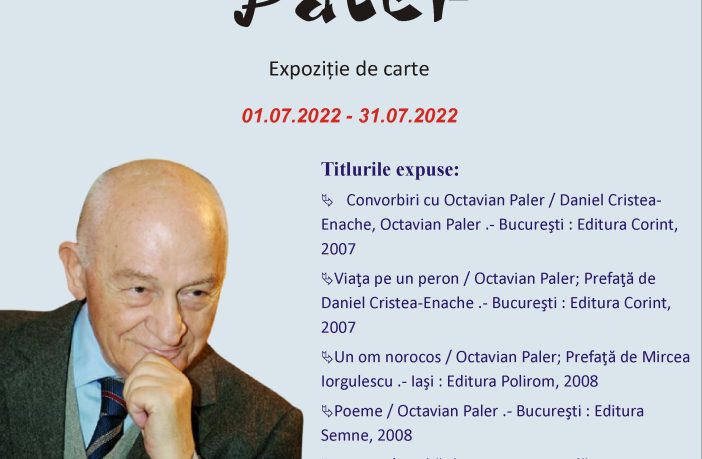 Biblioteca Județeană „Alexandru și Aristia Aman”, prin secția Depozit General, marchează împlinirea a 96 de ani de la nașterea poetului Octavian Paler prin organizarea unei expoziții de carte. Dintre cărțile expuse amintim: Convorbiri cu Octavian Paler / Daniel Cristea-Enache, Octavian Paler .- Bucureşti : Editura Corint, 2007 Viaţa pe un peron / Octavian Paler; Prefaţă de Daniel Cristea-Enache .- Bucureşti : Editura Corint, 2007 Un om norocos / Octavian Paler; Prefaţă de Mircea Iorgulescu .- Iaşi : Editura Polirom, 2008 Poeme / Octavian Paler .- Bucureşti : Editura Semne, 2008…