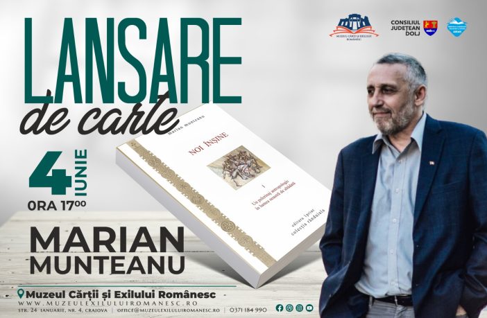 Muzeul Cărții și Exilului Românesc găzduiește miercuri, 4 iunie 2025, la ora 17.00, lansarea volumului „Noi înșine. Un pelerinaj antropologic în lumea noastră de altădată”, autor Marian Munteanu. Volumul face parte din colecția „Rânduială”, apărută la Editura 1 Print. La evenimentul vor conferenția prof. univ. Dr. Gabriela Păsărin, prof. univ. dr. Dinică Ciubotea, Tudor Nedelcea, critic și istoric literar și Irinel Adrian Cănureci, director al Secției Folclor din cadrul Muzeului Olteniei Volumul „Noi înșine. Un pelerinaj antropologic în lumea noastră de altădată”, de Marian Munteanu, reprezintă o lucrare importantă în domeniul etnologiei…