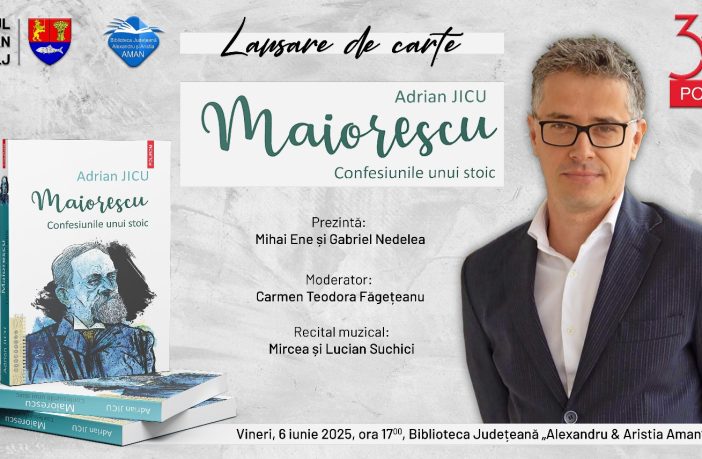 Biblioteca Județeană „Alexandru și Aristia Aman” găzduiește vineri, 6 iunie 2025, lansarea volumului „Maiorescu. Confesiunile unui stoic” autor Adrian Jicu. Evenimentul se va desfășura în sala „Acad. Dinu C. Giurescu” începând cu ora 17.00, în prezența invitaților Mihai Elne și Gabriel Nedelea. Moderator al evenimentului este Carmen Teodora Făgețeanu. Mircea și Lucian Suchici vor oferi celor prezenți un recital muzical. Adrian Jicu, născut în 1979, în „cartierele democrate” ale Bacăului, este lector la Facultatea de Litere a Universității „Vasile Alecsandri” din Bacău și director al Bibliotecii Județene „C. Sturdza”. A absolvit Facultatea…