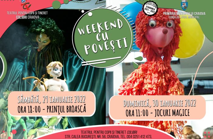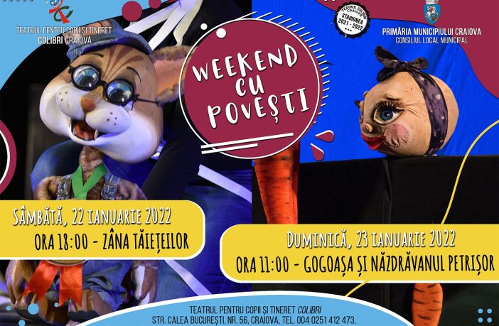 Sâmbătă, 22 ianuarie 2022, la ora 18:00, publicul se poate bucura la Teatrul Colibri Craiova de spectacolul „Zâna Tăiețeilor“, o poveste originală, scrisă de dramaturgul Alina Nelega și regizată de Gavril Cadariu. În distribuție regăsim actorii: Oana Stancu, Adriana Ioncu, Alis Ianoș, Geo Dinescu și Marin Fagu. Scenografia spectacolului este semnată de Mihai Pastramagiu, iar muzica este compusă de Zeno Apostolache. Duminică, 23 ianuarie 2022, la ora 11:00 este programat spectacolul „Gogoașa și Năzdrăvanul Petrișor“, adaptare după povești populare rusești, cu scenariul și regia de Alla Cebotari, pe care o…