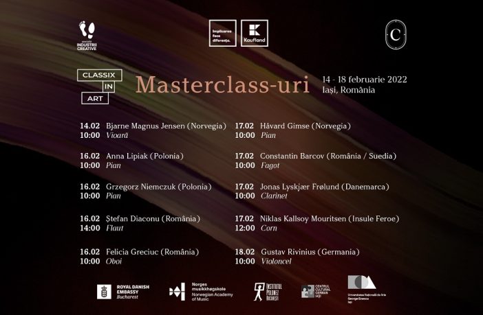 Asociația Industrii Creative, organizator al Classix Festival, cu sprijinul partenerului principal al ediției 2022, Kaufland România, lansează programul de masterclass-uri Classix in Art. 10 cursuri de măiestrie susținute de muzicieni din Norvegia, Polonia, România, Suedia, Insulele Feroe și Germania vor facilita perfecționarea a 52 de studenți ai universităților și liceelor cu profil muzical din România. Participarea la aceste sesiuni se face pe bază de înscriere online, în limita locurilor disponibile și în baza evaluărilor realizate de o comisie de specialiști în domeniile de aplicare. Termenul limită al înscrierilor este 5…