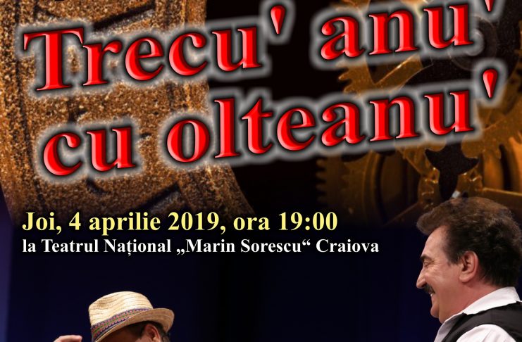 Ansamblul Folcloric „Maria Tănase” vă invită la premiera spectacolului „Trecu Anu’ cu Olteanu’”, joi, 4 aprilie 2019, de la ora 19:00. Spectacolul se va desfășura pe scena Teatrului National “Marin Sorescu” din Craiova. Solişti: Niculina Stoican, Mariana Ionescu Căpitănescu, Petrică Mîţu Stoian, Constantin Enceanu, Marius Măgureanu, Lavinia Bîrsoghe, Liliana Popa, Manuela Motocu, Aneta Şişu, Cristian Bănăţeanu, Ciri Mayer si Liviu Dică, împreună cu orchestra şi dansatorii Ansamblului Folcloric „Maria Tănase” au pregătit un spectacol cu obiceiuri de la Bobotaie la Constandinul puilor. Scenariu și regia spectacolului sunt semnate de conf.univ.dr.habil. Gabriela…