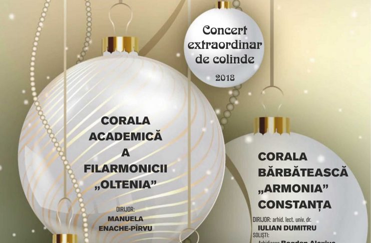 Filarmonica “Oltenia” Craiova încheie anul 2018 cu două concerte extraordinare de colinde, susţinute cu casa închisă, joi şi vineri, 20 şi 21 decembrie. Vor interpreta Corala Academică, dirijată de Manuela Enache-Pîrvu, şi Corala Bărbătească „Armonia” Constanţa, dirijată de arhidiacon lect. univ. dr. Iulian Dumitru. În program figurează colinde îndrăgite, cum ar fi: Valentin Gruescu: „Dimineața lui Crăciunu” , Nicolae Lungu: “Mărire-ntru cele-nalte”, Alexandru Pașcanu: „După datini colindăm”, Gheorghe Danga: „Sculați boieri” , Ion Popescu Runcu: „Noapte de Crăciun” , I. D. Chirescu: „Linu-i lin”. Corală Academică a Filarmonicii Oltenia din…