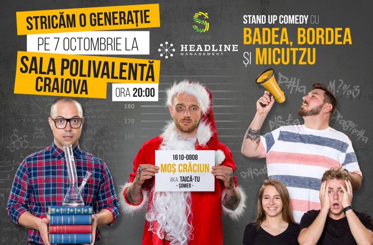 După interesul crescut pentru show-ul lor de la Bucuresti – Stricăm o generație – Badea, Bordea și Micutzu vine si la Craiova, la inceputul toamnei. Oltenii îi vor putea vedea pe actorii considerați unii dintre cei mari comedianți din România, pe 7 octombrie la Sala Polivalentă în cel mai nou show de stand up comedy al lor, un spectacol ”drept la replică” în contextul în care mulți ani performerii de Stand Up Comedy au fost acuzați de folosirea unui limbaj licențios în show-uri, precum și de abordarea directă, și uneori…