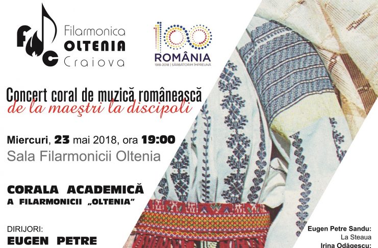 Miercuri, de la ora 19,00, iubitorii muzicii interpretate la cel mai sensibil instrument, vocea umană, sunt invitaţi să asculte un concert cu program integral românesc, multe lucrări fiind prezentate în primă audiţie. Corala Academică a Filarmonicii Oltenia Craiova va fi condusă muzical de trei dirijori, Eugen Petre Sandu, Pavel Şopov şi Manuela Enache, ceea ce se întâmplă rar într-un singur concert. „Evenimentul „De la maeştri, la discipoli” este un omagiu adus unor personalităţi ale vieţii muzicale româneşti, în anul Centenarului Marii Unirii, respectiv pe palierul muzicii corale naţionale. Am căutat…