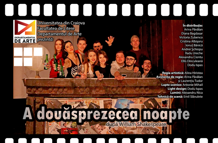 Studenţii anului III Actorie (Departamentul de Arte, Facultatea de Litere, Universitatea din Craiova) vă invită la spectacolul lor de licenţă, A douăsprezecea noapte, după W. Shakespeare. Premiera va avea loc vineri, 26 ianuarie, ora 19:00, în Aula Buia (Campus Agronomie). Intrarea este liberă. Profunzimile psihologice, provocările comice, întrebările vârstei îi vor testa pe tinerii porniţi la drumul regăsirii şi al împlinirii. Vorbim de studenţi? Vorbim de personaje? Vorbim de actori? Vă invităm să-i vedeţi jucând pe: Arina Păvălan, Diana Bagdasar, Victoria Zubenco, Cristina Albişoru, Ionuţ Bănică, Andrei Şchiopu, Radu Ureche, Alexandru Ciontu, Ellis Dinculeană, Dodu Ispas. Asistenţa de regie: Arina…