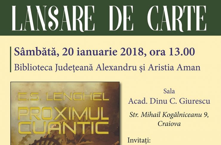 Biblioteca Județeană “Alexandru și Aristia Aman” găzduiește sâmbătă, începând cu ora 13.00, lansarea volumului „Proximul cuantic”, autor Eugen Ștefan Lenghel. Moderatorul evenimentului este Mircea Liviu Goga, iar printre invitați sunt prezenți și Aurel Maria Baros și Viorel Pîrligras. “Ritm, idee, suspans, finaluri neașteptate, accident științific, acțiune, teme de meditație, personaje solid construite, universuri cunoscute… Cam asta ne propune Eugen Lenghel într-o carte care trebuie citită mai ales de aceia care au rămas perpetuu îndrăgostiți de epoca de aur a science-fiction-ului și care știu din teorie sau simt din instinct că…