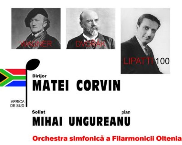 Programul săptămânii nr. 27 JOI, 25 MAI 2017, ORA 18:00 – Sala „Filip Lazăr”, Filarmonica „Oltenia” – Întâlnirile AmiTEA Invitaţi: dirijorul MATEI CORVIN (AFRICA DE SUD), pianistul MIHAI UNGUREANU VINERI, 26 MAI 2017, ORA 19:00 – Concert simfonic – ORCHESTRA SIMFONICĂ A FILARMONICII „OLTENIA” – DIRIJOR: MATEI CORVIN (AFRICA DE SUD); SOLIST: MIHAI UNGUREANU (pian) În program: Richard Wagner: „Idila lui Siegfried” Dinu Lipatti (100 de ani de la naștere): Trei dansuri simfonice pentru pian și orchestră – primă audiţie Antonín Dvořák: Simfonia nr. 7 în Re minor, op. 70