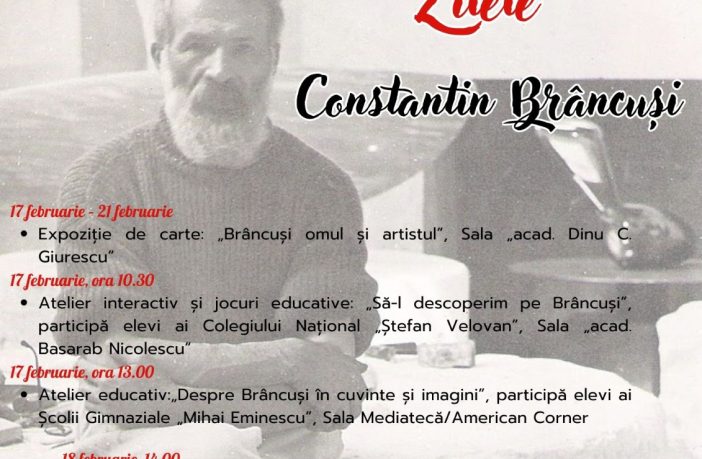 Biblioteca Județeană „Alexandru și Aristia Aman” organizează în săptămâna 17 – 21 februarie 2025 o serie de evenimente culturale dedicate împlinirii a 149 ani de la nașterea marelui sculptor român Constantin Brâncuși. Ajunsă la cea de-a treia ediție, Ziua Națională Constantin Brâncuși este organizată sub egida Consiliului Județean Dolj și cuprinde o serie de activități culturale menite să aducă mai aproape de public viața și opera marelui artist. Programul evenimentelor: 17 februarie – 21 februarie – Expoziție de carte „Brâncuși – omul și artistul”, sala „acad. Dinu C. Giurescu” 17…